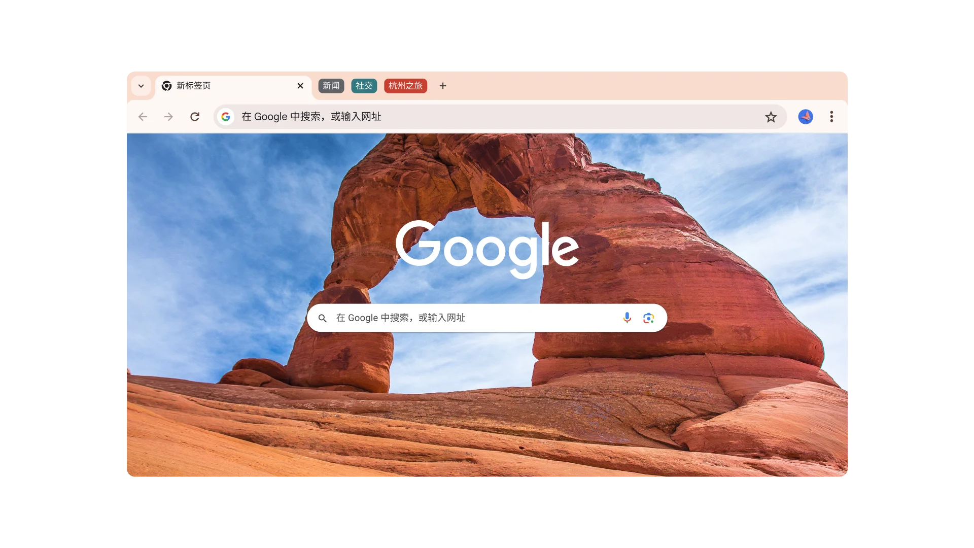 利用主题、深色模式和专为您打造的其他选项,让您的网络浏览器个性十足。